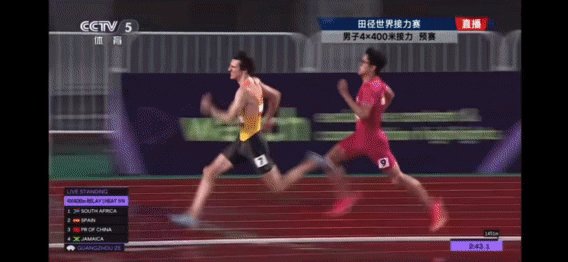 中国队男子4×400米实现末棒超越