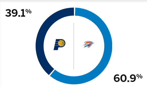 ESPN预测G5胜率:步行者39.1%,雷霆60.9%